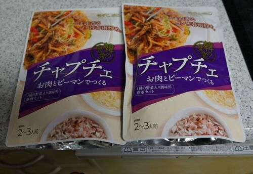 昨日の晩ご飯は約1年ぶりにチャプチェにしました。前日の豚肉も少し残してました。最初に豚肉炒めて最後にピーマン入れて完成。久しぶりに食べたけど美味しかった。賞味期限が切れてる納豆キムチはおやつ?