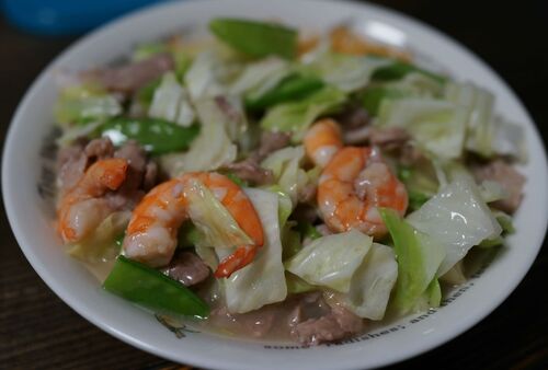 昨日の晩ご飯は長崎皿うどんを作りました。ちゃんぽんスープを付け足しました。野菜類肉類結構満タン 具が多めなので餡かけを増やすため片栗粉とちゃんぽんスープで代用。妻が実家から魚の南蛮漬けをもらってきました。白いのは玉ねぎかな?お代わり
