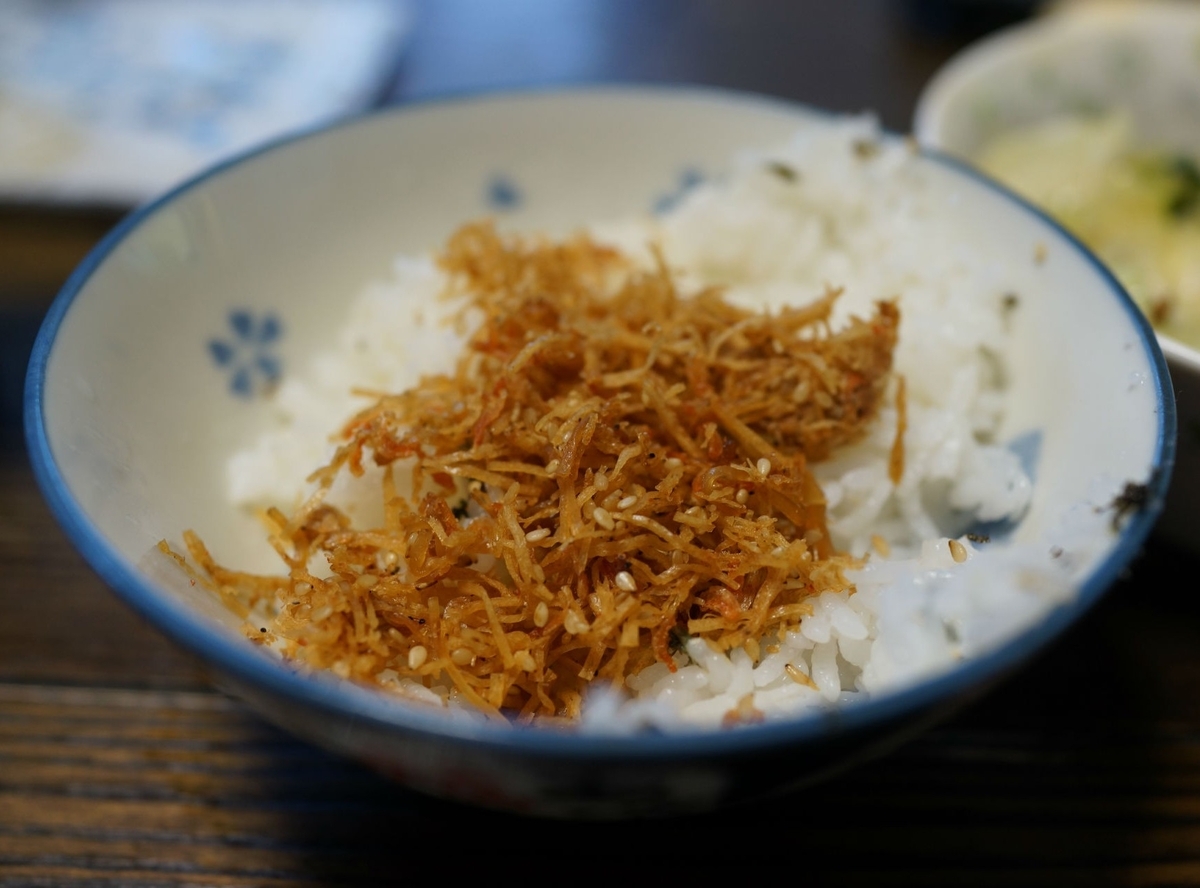ホタテのふりかけで食べました。