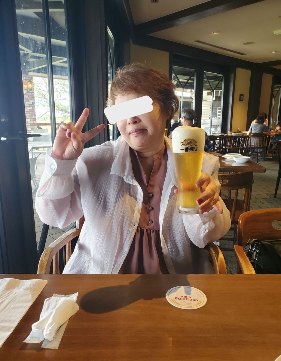 出来たてのビールで乾杯? 去年までは秋には左奥の広大な土地にコスモスが1000万本植えられてましたが、今年から植えなくなったそうです。