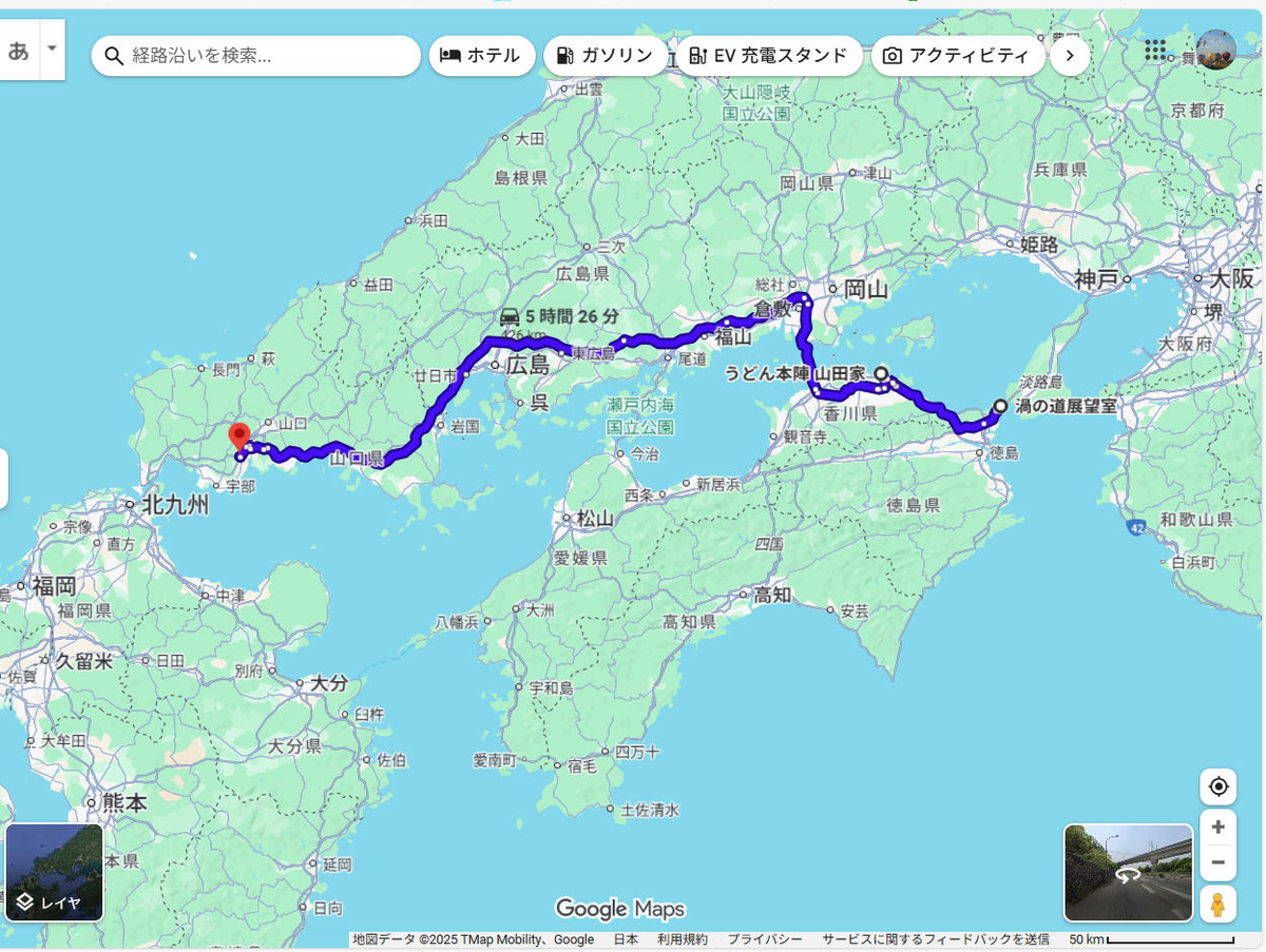 岡山に入る前あたりで妻と運転交代、瀬戸大橋の予島PAでトイレ休憩と
