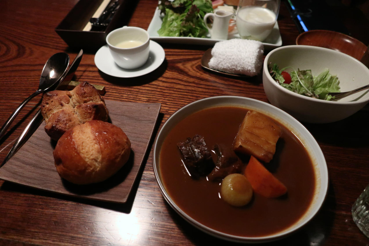 妻は腹が減ったらしくビーフシチューのフルセット。