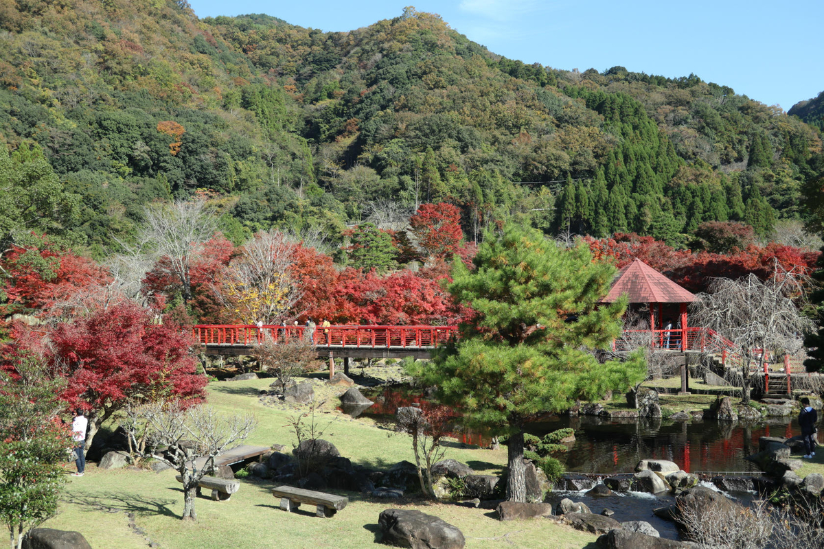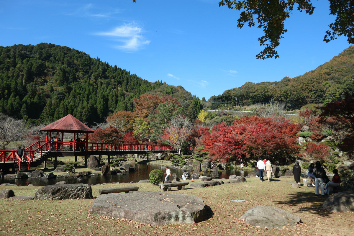耶馬溪を目指しますがやはり一目八景あたりは凄い人出で車道を歩く人が多いのでノロノロ運転、駐車場も空いてなさそうなので、耶馬溪ダム記念公園 溪石園まで行きました。