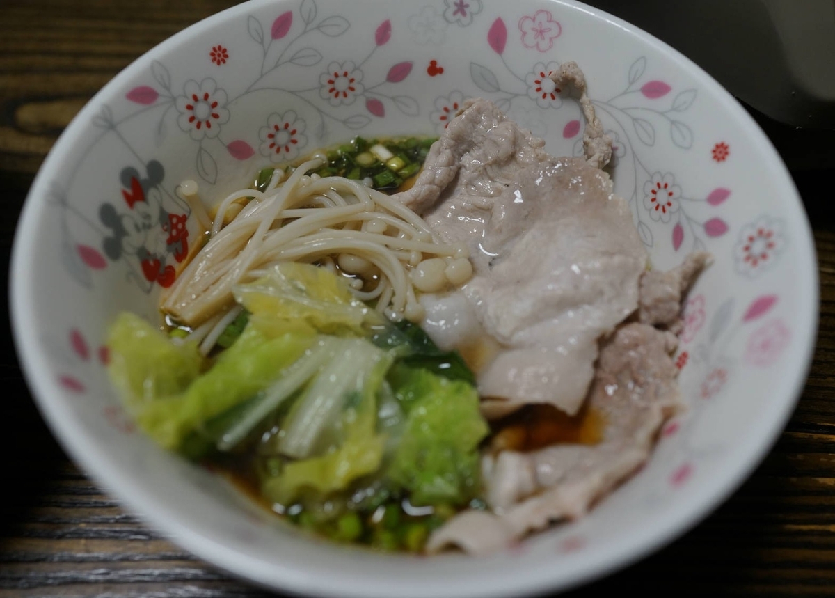 流石に豚肉が少し余りました。自分と長女はポン酢、妻と長男はごまだれで。