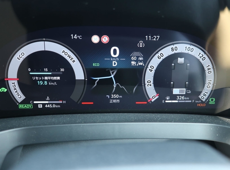 見にくいけど曲がるところではヘッドアップディスプレーにも