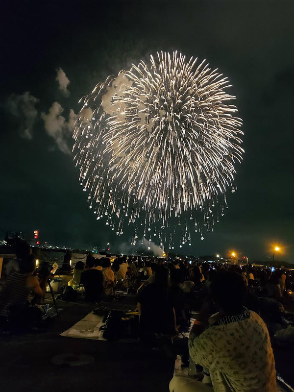 安倍さんの追悼花火が19時30分頃上がりました(花火大会は19時50分から