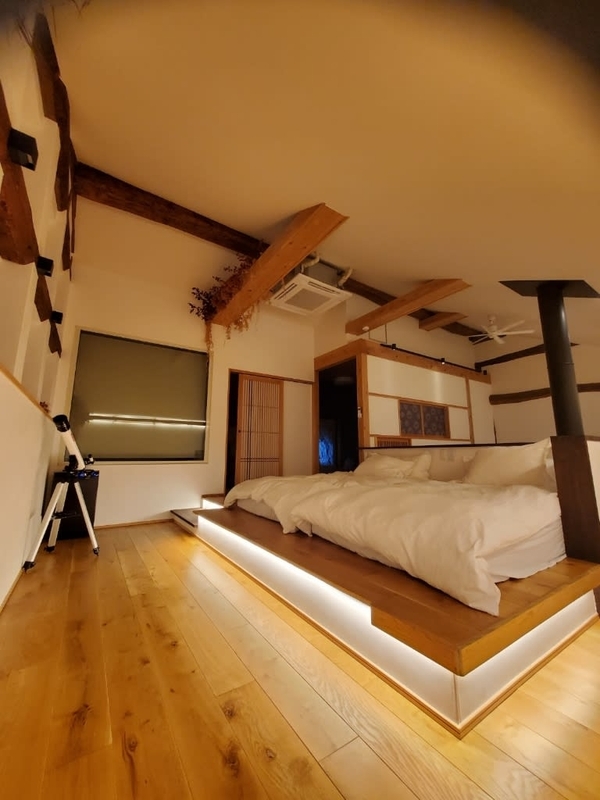 自分たちは築150年以上の納屋をリノベーションした2階建ての宿 -Naya-の方に宿泊