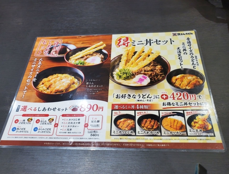 自分はしあわせセットの肉ごぼ天うどんとミニカツとじ丼