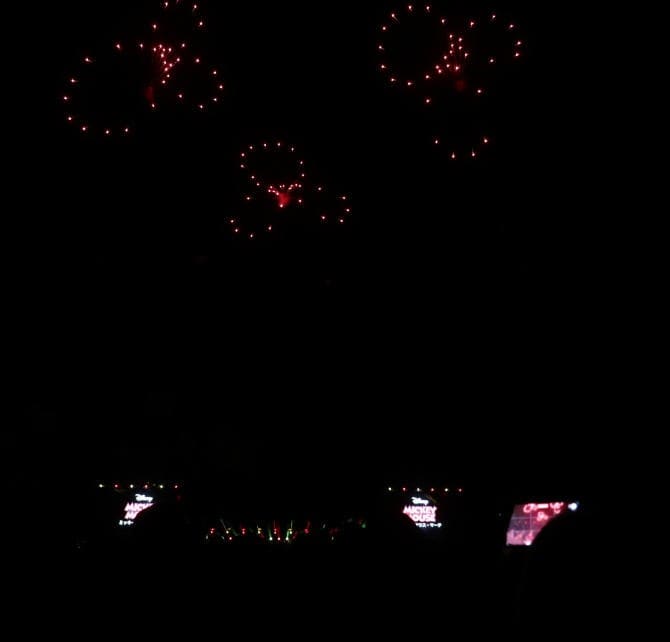 ディズニー関係の音楽が次々と流れそれに合わせ色んなタイプの花火が上がります。